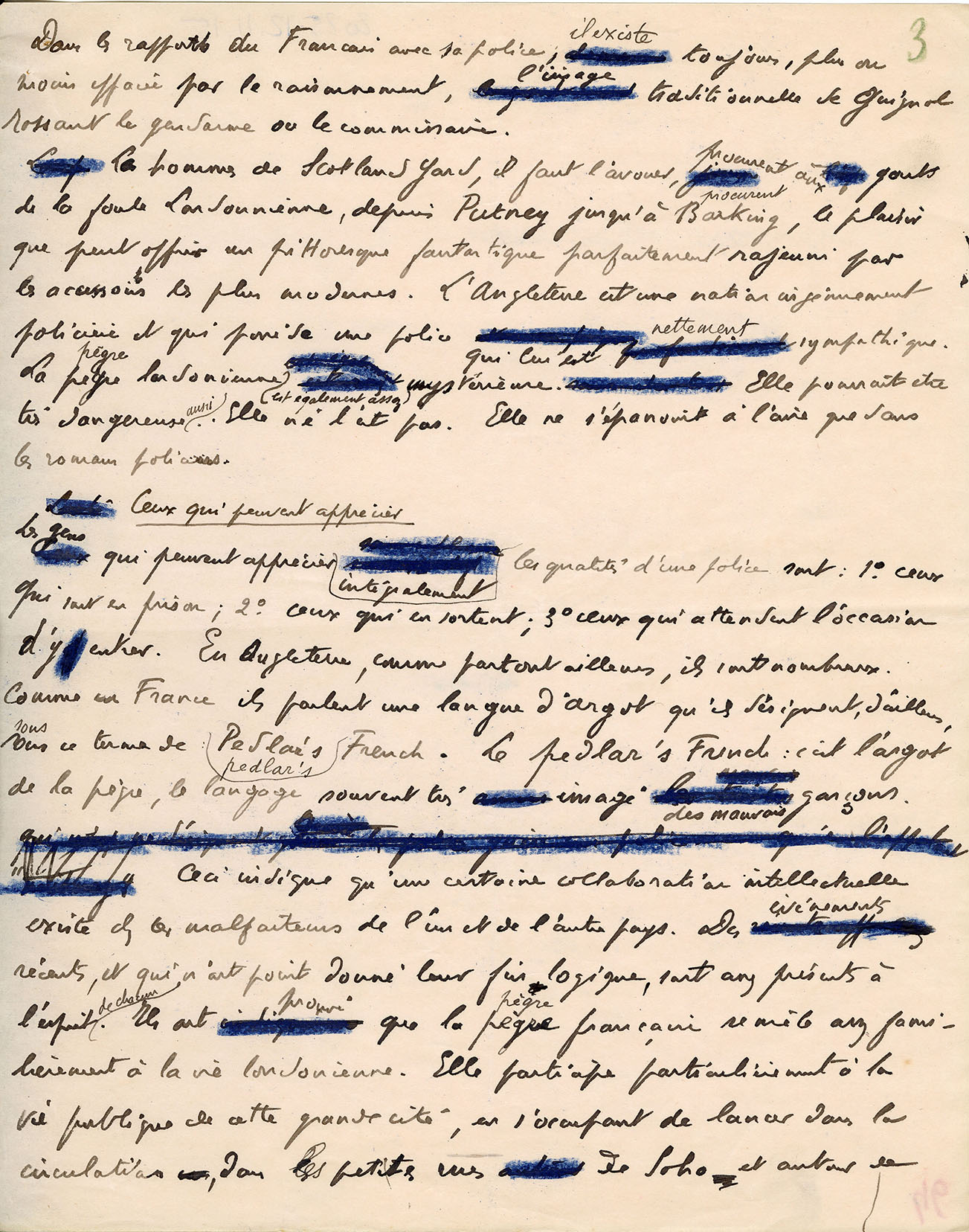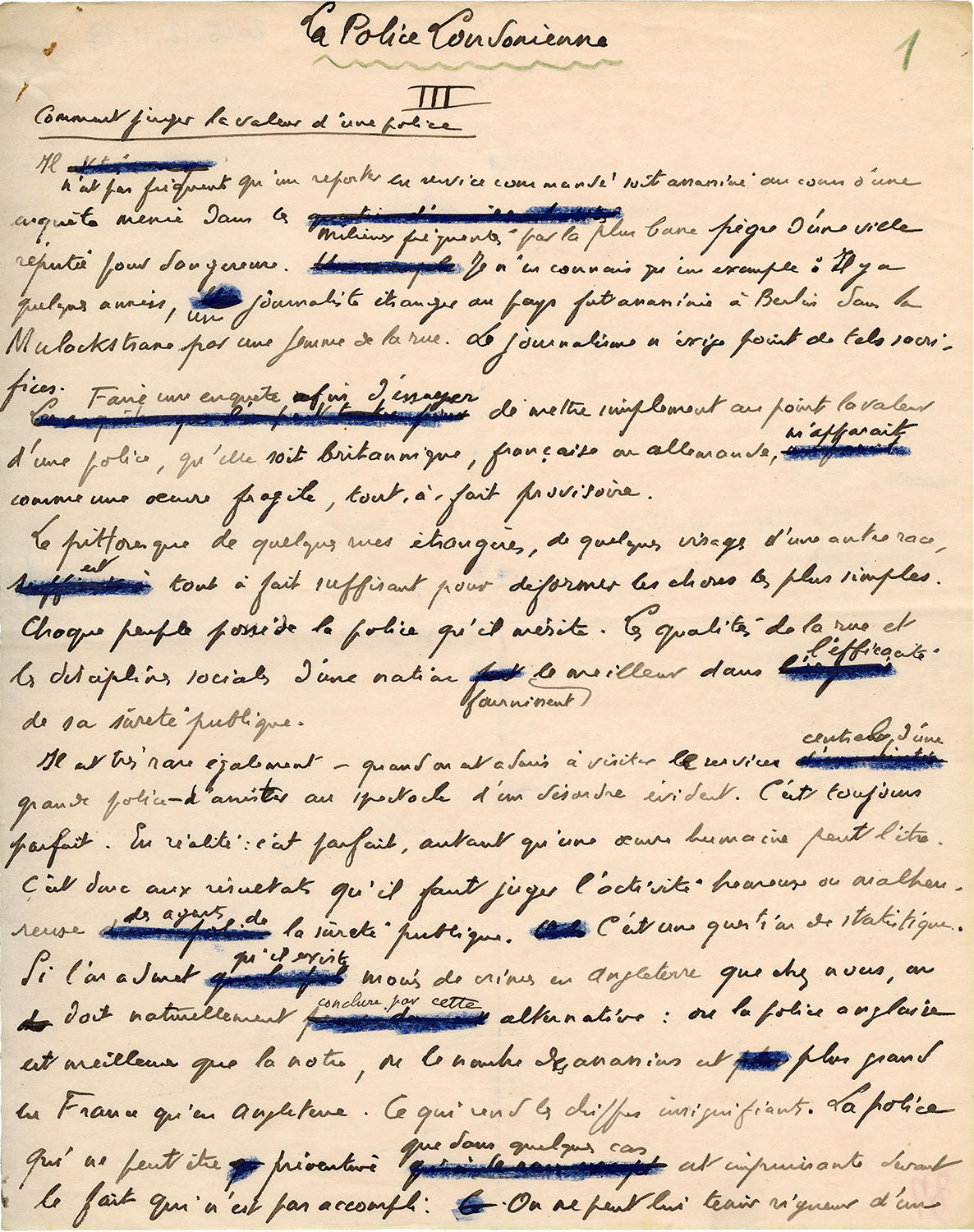 Le pittoresque de quelques rues étrangères, de quelques visages d’une autre race, est tout à fait suffisant pour déformer les choses les plus simples. Chaque peuple possède la police qu’il mérite. La qualité de la rue et les disciplines sociales d’une nation fournissent le meilleur dans l’efficacité de sa sûreté publique.