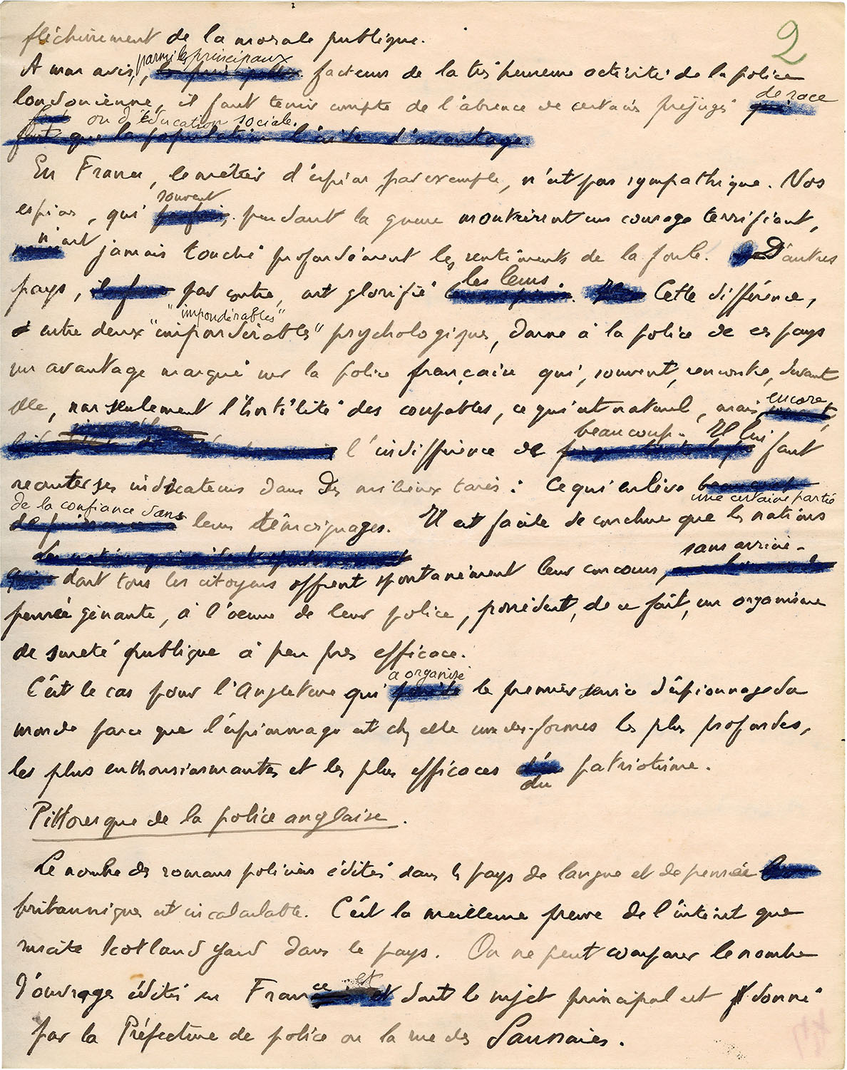 On envie toujours la police du voisin. Un « je ne sais quoi » de mystérieux et de littéraire la rend redoutable, infaillible et perspicace. Il serait plus juste de penser que la police anglaise possède une organisation anglaise au service de toutes les qualités de la race. Il en est de même pour la police allemande, italienne ou russe. Elles diffèrent moins par leurs principes essentiels que par la manière de les appliquer.