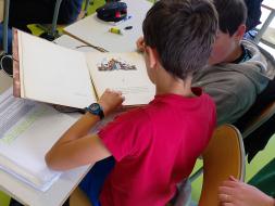 On leur a projeté le film sur la maison de Pierre Mac Orlan, réalisé par Oliver Aubry et échangé avec eux sur le livre, la vie et l'œuvre de l'écrivain, puis en toute confiance, les enfants ont pu manipuler et observer des œuvres originales et des objets ayant appartenu à Pierre Mac Orlan. La journée s'est terminée par Le chant de Fanny de Lanninon. Des élèves sympas, attentifs, cultivés."